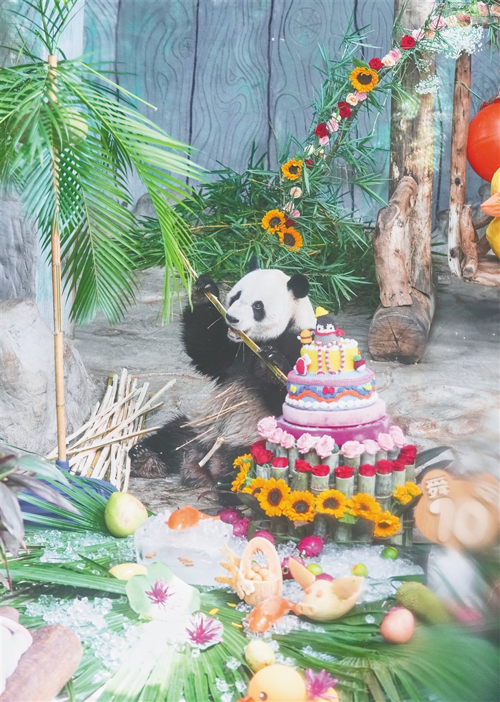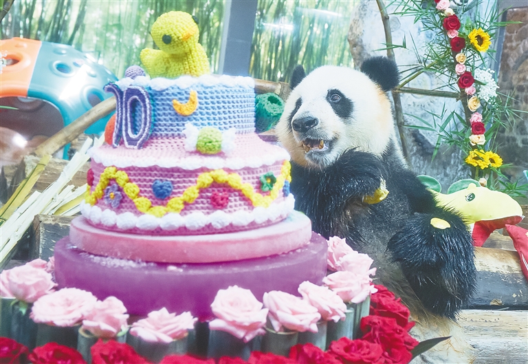 8月20日,海南热带野生动植物园(以下简称海野)为园内的大熊猫兄弟贡贡、舜舜举办了10周岁生日庆典。园区内随处可见熊猫造型旗帜和生日主题标语,氛围满满。
