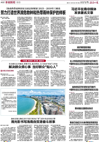 到2030年,国家公园管理体制更加健全、运行机制更加高效、支撑保障体系更加完善;以热带雨林为代表的自然生态系统破碎化问题得到有效解决;海南长臂猿种群数量达到50只以上;监测体系覆盖率达到100%……《海南热带雨林国家公园总体规划(2023—2030年)》(以下简称《规划》)中提出了一系列目标,如何实现这些目标?《规划》有哪些重点和亮点内容?对此,海南省林业局(海南热带雨林国家公园管理局)有关负责人进行了解读。