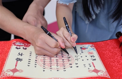 “这次婚礼活动形式新颖、简约、温馨。尤其是这张传统婚书,让我们重拾‘从前慢’的爱情与诗意,也警醒我们年轻人要忠于婚姻、努力守护家庭。”钟华浩诗说,现在年轻人工作压力大,时间紧张,“今天的婚礼不仅减轻了我们新人的负担,也非常有仪式感和代入感,给我们留下了美好的回忆和永恒的纪念。”