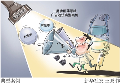 在广告中宣传治愈率有效率、宣称食品具有疾病治疗功能、制造容貌焦虑,发布医疗用毒性药品广告,这些都属于违法广告。市场监管总局23日曝光一批涉医药领域广告违法典型案例,回应百姓关切,营造有序市场环境。