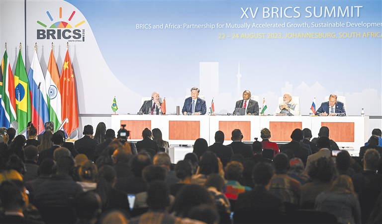 南非总统拉马福萨主持,巴西总统卢拉、印度总理莫迪和俄罗斯总统普京(线上)出席。