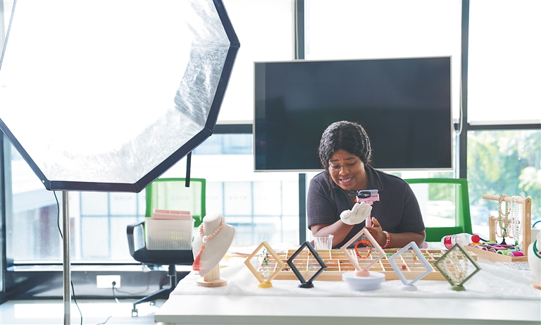 “大家看,这个珠子是青绿色,就如同中国的玉石一样。自古以来,中国人就钟爱玉石……”8月23日晚10时,位于海口复兴城的国家海外人才离岸创新创业基地,主播阿庄一边对着镜头制作手链,一边向外国网友介绍中国文化。