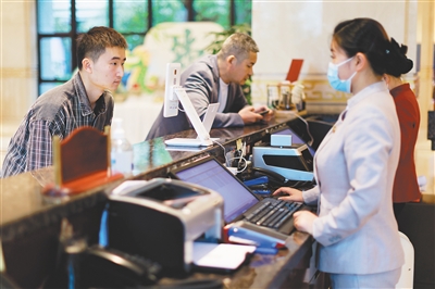 核验身份信息、录入人脸识别、登记联系方式,距离西安华清宫景区不远的一家温泉酒店内,2分钟不到,莫女士一家三口就拿到了酒店房卡。酒店前厅经理张小雪介绍,酒店自2018年开始实行免押金和免查房措施。