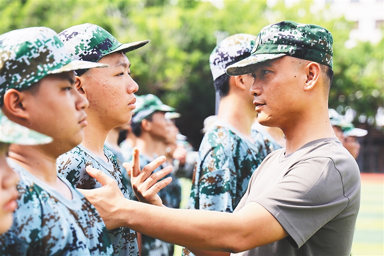 8月24日,万宁中学组织开展军训活动,对今年秋季入学的高一年级新生统一进行军训。通过队列行进、站军姿等训练科目,让学生们在军训中锻炼身体、磨炼意志,有助于形成良好的学习和生活习惯。