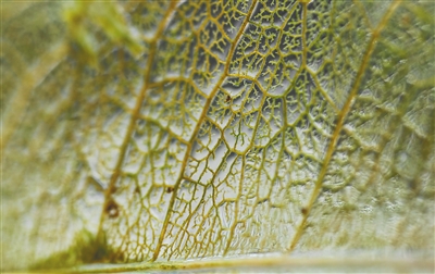 自然界中不缺少美,而是缺少发现美的眼睛。记者曾有幸在海南黎母山热带雨林的天然石臼中,发现了叶肉自然分解后留下的较为完整的叶脉。石臼中的小水坑积攒了一些树叶,在水的浸泡中,这些树叶没有像枯叶那样卷曲变形。整片叶子的叶肉经过均匀分解后,纵横交错的叶脉清晰可见,让人对这天然的艺术作品不禁心生赞叹。