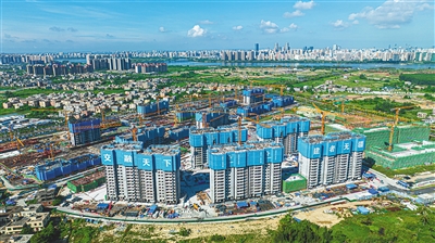 近日,航拍建设中的海口江东新区椰青园S01项目。目前,该项目正加快施工,全力冲刺今年12月底主体结构全面封顶。据了解,该项目是我省重点民生工程,总用地面积约5.38万平方米,总建筑面积约23万平方米,将建设高标准商业配套、休闲游乐设施和学校等,建成后提供回迁住房1250套。本报记者 袁琛 摄
