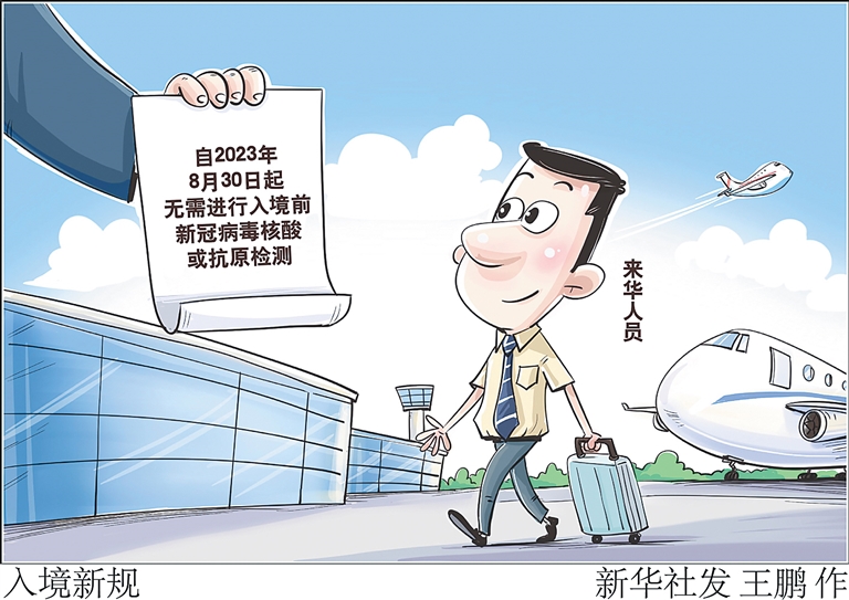 新华社北京8月28日电 (记者温馨 袁帅)外交部发言人汪文斌28日在例行记者会上说,自2023年8月30日起,来华人员无需进行入境前新冠病毒核酸或抗原检测。