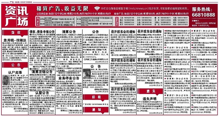 因公司经营管理不善,经公司股东决议,决定即日起海南协立工程咨询有限公司公路工程综合丙级试验检测资质(证书编号:琼GJC综丙2019-003)的检测业务的停业公告。各业务单位、企业等社会团体如与我司有未完成业务,请于2023年8月29日至9月5日间与我司联系办结,届时我司的公路工程综合丙级试验检测资质将注销。联系人及电话:潘智晟 13691221015。