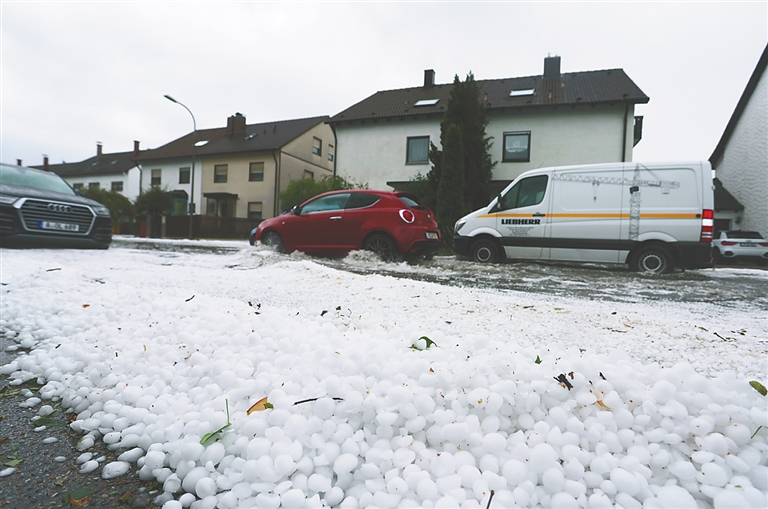 这是8月26日在德国巴伐利亚州拍摄的冰雹。