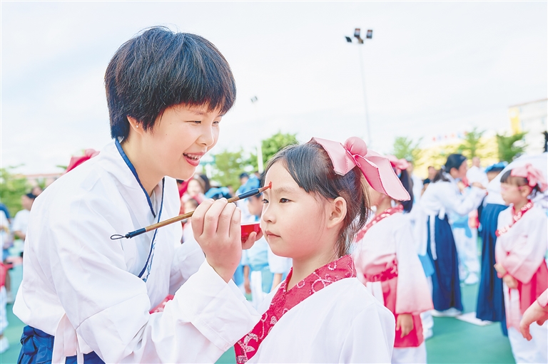 8月29日上午8点,海口市秀英区长滨小学为该校400多名一年级新生举行了一场特别的入学典礼。据了解,该校历来重视优秀传统文化教育,在教学中已开设武术操、中医药综合实践课等特色课程。