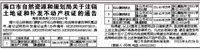 经调查,以上《国有土地使用证》已登报遗失,现我局通告注销,上述土地证将不再具有法律效力。凡对此有异议者,请自通告发布之日起十五个工作日内向我局秀英分局提出书面申述,逾期无异议,我局将依法补发上述宗地新的《不动产权证》。特此通告。