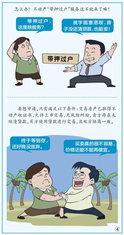 推行“带押过户”,也是政府部门为民减负的服务创新。过去,二手房交易存在须先还款解押、涉及部门多、所需材料杂、审批程序多等难点,对于二手房买卖双方而言,开心事难免成为烦心事。“带押过户”破解交易堵点,打通部门壁垒,创新办理机制,简化了交易流程,缩短了交易时间,减少了群众来回奔波的不便,同时减轻了资金筹措压力。买卖双方的负担少了,便利度、获得感自然得到提升。由此可见,举措的创新、服务的贴心,能够换来百姓省时省力又省心。