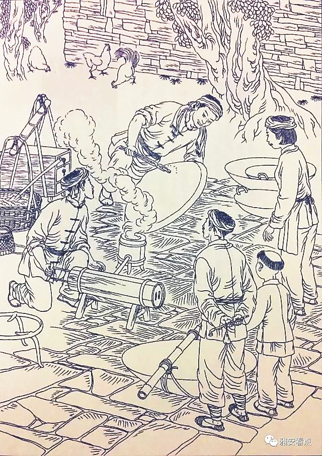 补锅匠这边,弟弟负责拉风箱溶铁水,哥哥认真地查看铁锅的破损情况,然后把铁锅的小漏洞敲大,一些很薄容易裂开的地方也敲出个洞来,看到这般操作,铁锅主人叔二平(临高话的称呼习惯)急了,对铁匠说:“师傅,你怎么越敲越多,眼看着好好的你也敲开。”“都差不多坏了,要是不敲开,几天后就漏了,我们可是要下个月才再来哟。”没办法,敲就敲吧。敲完,工匠哥哥用一个渣子从炉子里接来铁水,左手用一个已沾湿的渣子在破洞的另一边接着准备抹平,右手把那装有铁水的渣子往铁锅破洞一倒,左右手同时动作,铁锅破洞就被补上了,并且两边都被抹平了。