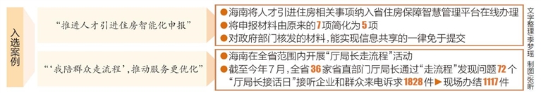 本报讯(记者李梦瑶)日前,国务院办公厅印发《关于依托全国一体化政务服务平台建立政务服务效能提升常态化工作机制的意见》,梳理汇总了57项地方部门提升政务服务效能的典型经验案例,推动“一地创新、多地复用”。海南两个案例入选,分别为“推进人才引进住房智能化申报”“‘我陪群众走流程’,推动服务更优化”。