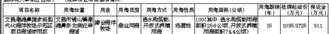 经文昌市人民政府批准,文昌市自然资源和规划局决定以挂牌方式公开出让文昌潮滩鼻国家级现代化海洋牧场示范区项目海域使用权。现将有关事项公告如下:一、挂牌出让项目基本情况: