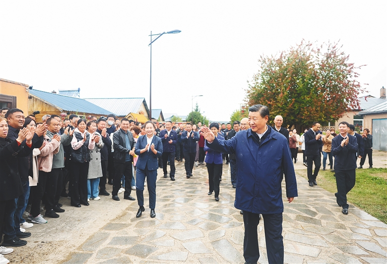 离开小院时,当地群众在道路两旁热情欢送总书记。习近平亲切地对大家说,北极村前景可期。希望广大干部、群众共同努力,把乡村建设得更好、把生态保护得更好、让人民生活得更好,共同奔向中国式现代化的美好未来。
