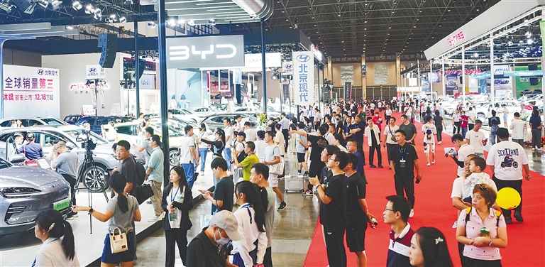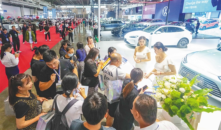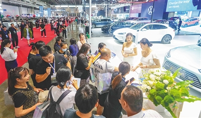 本报海口9月8日讯 (记者张期望 马珂)9月8日,2023海报集团金秋车展进入第二天,市民购车热情不减,入场人数达到1.32万人次,比亚迪等新能源车深受消费者青睐。当天,现场销售和预订车辆457辆,销售额达7700多万元。