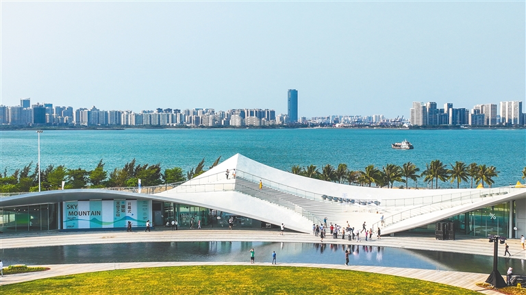 如今,海口湾不仅为市民游客休憩提供开阔的活动空间、舒适的亲水环境,还集聚一批时尚店铺、艺术展演等,吸引不同年龄段市民、游客、网络红人前来,共同构建起开放活跃的城市公共区域。