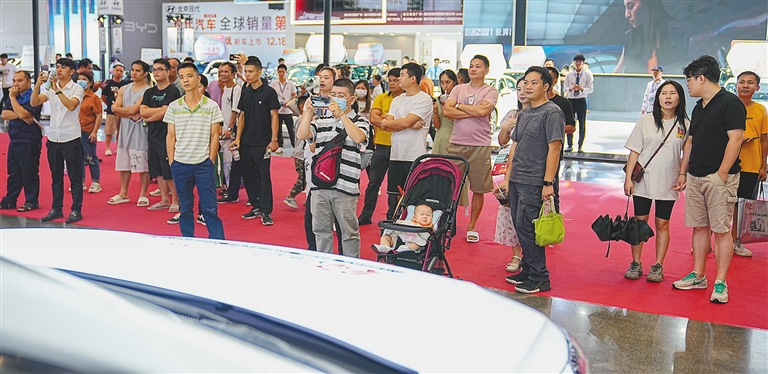 “款式太多了,看得人眼花缭乱,我想看的车型这里都有。”连续两天到金秋车展观展的海口市民冯永锋,最后出手购买今年首次亮相海南的吉利银河L6。“这是我人生中的第一款车,不仅价格实惠,更重要的是开起来省钱。”冯永锋说,这次来购车,预算是15万元,对于家用车需求而言,这款车性价比是最高的。