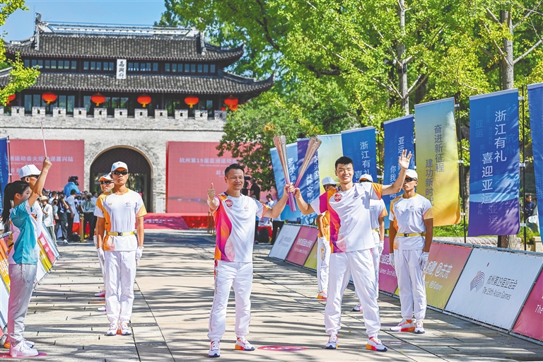 据新华社杭州9月10日电 (记者唐弢)杭州第19届亚运会火炬传递嘉兴站活动于10日举行。整个传递路线以“红船领航、筑梦未来”为主题,沿途串联起狮子汇渡口、南湖红船、南湖革命纪念馆等16个重要点位,全方位呈现浙江嘉兴作为历史文化名城的独特辨识度。
