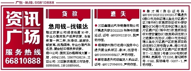 海口公司:国贸玉沙路椰城大厦一层,68541188、13307529219;三亚公司:三亚解放路第三市场旁,88558868、13518885998。