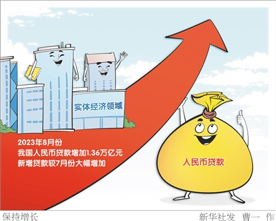 8月,企(事)业单位贷款增加9488亿元;8月末,我国社会融资规模存量同比增长9%,对实体经济发放的人民币贷款余额同比增长10.9%。