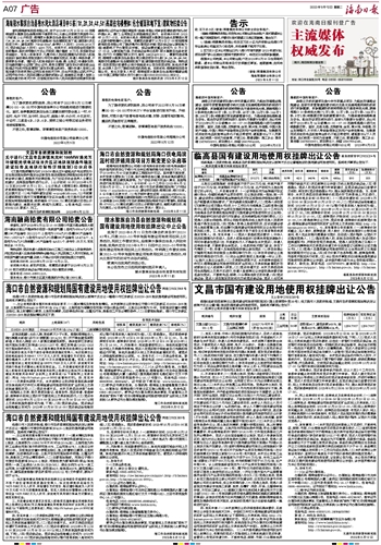 海口市自然资源和规划局国有建设用地使用权挂牌出让公告