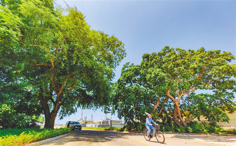 近日,在位于洋浦经济开发区的海南炼化公司年产100万吨乙烯项目里,一株株枝繁叶茂的百年古树,成了新厂区里的一道独特风景线。