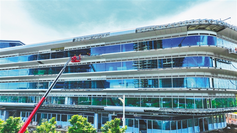 该项目由4栋花园式建筑围合布局,项目楼顶铺设的5400余平方米光伏板已完成安装并网投产,建成后将成为江东新区又一标志性绿色建筑。