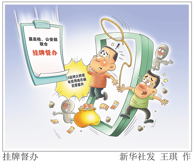 据新华社北京9月12日电 (记者刘硕)记者12日从最高人民检察院获悉,为依法从重打击境外电信网络诈骗等违法犯罪活动,依法从重打击境内协同犯罪人员,坚决维护人民群众切身利益,最高检、公安部在前期联合督办2批8起案件的基础上,近日联合挂牌督办第三批5起特大跨境电信网络诈骗犯罪案件。