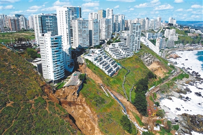这是9月11日在智利比尼亚德尔马市与康孔市交界处拍摄的一住宅区的滑坡情况。