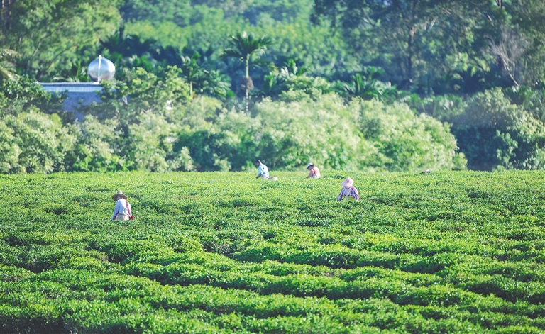 “这片茶树顶端已经成熟,得及时采摘……”茶园间,来自海南农垦白沙茶业股份有限公司的党员干部常在作业一线驻扎,为茶农答疑解惑,解决生产难题。