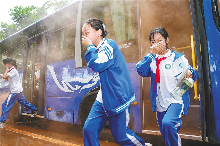 9月18日,来自澄迈县实验小学、iSchool微城未来学校的学生走进海口市中小学生安全应急演练基地,开展安全应急综合演练。