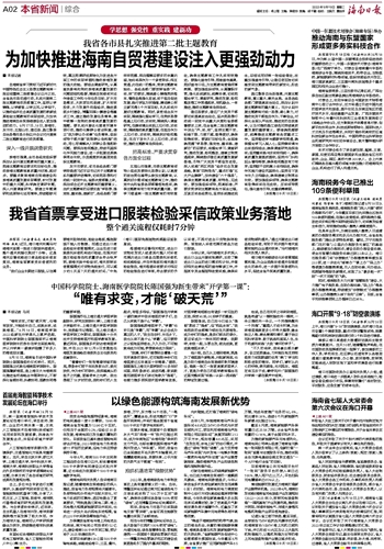 为加快推进海南自贸港建设注入更强劲动力