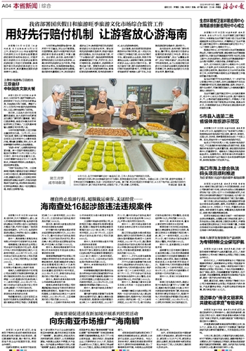 用好先行赔付机制 让游客放心游海南