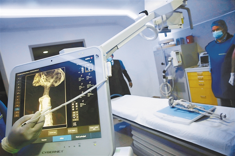 9月18日,工作人员在墨西哥威斯基鲁康对“外星人遗体”进行X光检测。