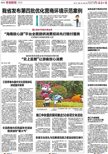 “海南放心游”平台全面提供消费投诉先行赔付服务