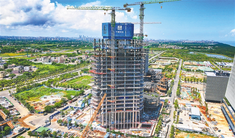 中国石化自贸大厦项目是中国石化在海口江东新区起步区核心地块打造的海南区域总部基地。项目于2021年12月开工建设,设计高度150米,总建筑面积近11万平方米。总计34层的大楼核心筒目前已经建设到23层。