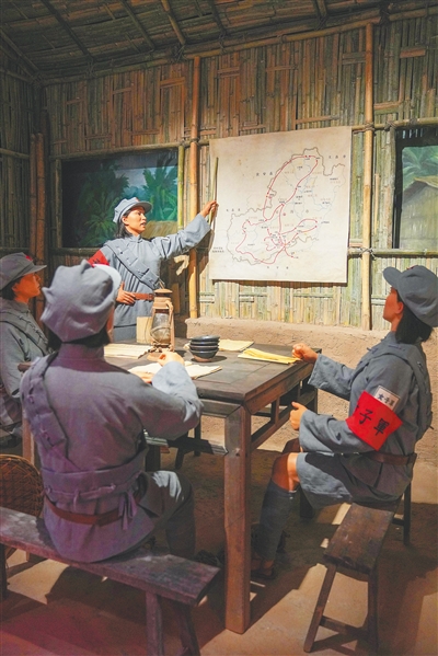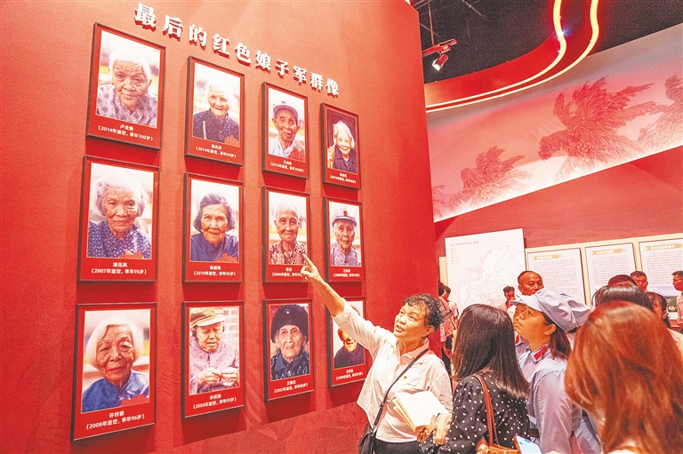 展馆布展单位相关人员介绍,在“女子军特务连战地纪实”部分,特别采用了主造型一线式贯穿的方式,“让观众在观展一开始,就将思绪带入到这条历史长河中,也契合了万泉河的具象表达。”
