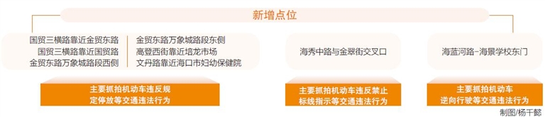 本报海口9月23日讯(记者邓海宁 通讯员杨光明)为进一步强化海口道路交通秩序的管理,预防和减少道路交通事故发生,结合辖区道路实际情况,海口市公安局交警支队将于9月27日起在海口国贸三横路等路段新增8套固定式交通技术监控设备。