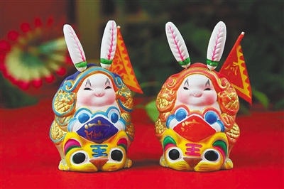 明清时期,京城有拜“兔儿爷”的习俗。明人纪坤在《花王阁剩稿》中记载:“京中秋节多以泥抟兔形,衣冠踞坐如人状,儿女祀而拜之。”旧时,北京前门五牌楼、后门鼓楼、西单、东四等处,一到中秋前后,兔儿爷摊子到处都是,极为热闹。