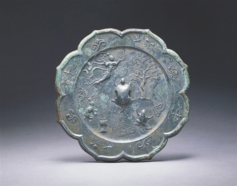 宋代辛弃疾有词云:“一轮秋影转金波,飞镜又重磨。”在稼轩笔下,洒下万里金波的秋月,好似飞上夜空重磨过的铜镜。镜面光洁的圆镜与中秋的圆月确有几分形似,唐诗“皓魄当空宝镜升,云间仙籁寂无声”,更是直接将明月比作宝镜。另外,“月是故乡明”,中秋佳节自古便是游子归家与亲友团聚的日子,铜镜亦有“破镜重圆”的寓意。清代《渊鉴类函·卷二十·中秋三》引《唐太宗记》载:“八月十五日为中秋节,三公以下献镜及盛露囊。”可见在唐代,铜镜与中秋节已有不解之缘。而且留存于世的唐代铜镜,确有不少绘月宫图。