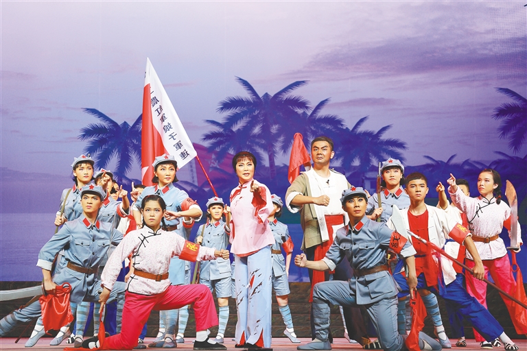 这部师生同台出演的现代琼剧《红色娘子军》,在坚持保留原版精华的基础上,立足琼岛地域特色,创新吸纳大量海南元素,进行艺术再造,带着浓浓的“海南味”,极具舞台感染力。
