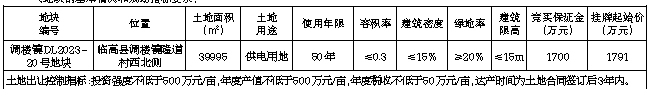 二、本次挂牌出让设有底价,按照出价最高且不低于底价者得的原则确定竞得人。三、开发建设要求:(一)该宗地拟作为我县海上风电项目使用,出让地块须统一规划、统一开发,建设须符合《海南临高CZ1场址60万千瓦海上风电项目陆上集控中心独立地块控制性详细规划》要求。(二)竞得人须在签订《挂牌出让成交确认书》后,5个工作日内与临高县发展和改革委员会签订《海南省产业项目发展和用地准入协议》,20个工作日内与临高县自然资源和规划局签订《国有建设用地使用权出让合同》,并严格按照约定内容进行开发建设,否则将承担相关违约责任。(三)竞得人出资比例结构、项目公司股权结构未经土地所在地人民政府批准不得发生变动。(四)竞得人取得土地使用权后,应依法建设使用土地和管理土地,切实履行《国有建设用地使用权出让合同》中的权利和义务。四、竞买申请: (一)竞买人资格:1.中华人民共和国境内外的法人、自然人或其他组织(法律另有规定者除外)均可申请参加竞买(注:失信被执行人不得参加本次竞买),申请人应单独申请,不接受联合体竞买。2.经政府相关部门核实,存在下列情形之一的,申请人及其控股股东禁止参加竞买:(1)存在伪造公文骗取用地和非法倒卖土地等犯罪行为的;(2)存在非法转让土地使用权等违法行为的;(3)因企业原因造成土地闲置一年以上的;(4)拖欠土地出让金的。(二)本次挂牌出让的详细信息、风险提示和具体要求等,见挂牌出让手册及其他相关文件。手册和文件可从海南省建设用地使用权和矿业权网上交易系统(以下简称网上交易系统,网址:http://lr.hainan.gov.cn:9002)查看和打印。(三)有意向的竞买人可登录网上交易系统提交竞买申请,按要求上传竞买申请文件。本次交易不接受电话、邮寄、书面、口头等其他形式的申请。 竞买申请时间:2023年9月26日08:30至2023年11月1日17:00(以网上交易系统服务器时间为准,下同)。(四)竞买人在网上交易系统提交竞买申请时,须按照挂牌出让手册的有关规定足额缴存竞买保证金或使用银行保函方式提供竞买保证金。竞买保证金到账截止时间:2023年11月1日17:00。(五)竞买人的竞买申请文件审核通过,且竞买保证金已按要求交纳的,网上交易系统自动发放《竞买资格确认书》,确认其获得竞买资格。竞买资格审核时间:2023年10月24日08:30至2023年11月1日17:30。五、挂牌报价时间及网址:(一)挂牌报价时间为:2023年10月24日08:30至2023年11月3日10:00。(二)挂牌网址:网上交易系统(http://lr.hainan.gov.cn:9002/)。(三)网上挂牌报价时间截止时,无竞买人报价,挂牌活动自动结束;有竞买人报价,网上交易系统限时5分钟在线询问,有竞买人在此规定时限内表示愿意参与网上限时竞价的,系统自动进入网上限时竞价程序,以竞价方式确定竞得人。六、该地块安置补助费已落实到位,地上附着物已清表,土地权利清晰,无法律经济纠纷;不存在土壤污染,符合土壤环境质量要求;宗地已基本完成土地平整,地块周边可以满足施工建设所需的水、电供应,相关设备、机械可以进场施工,具备动工开发必需的条件。七、本公告未尽事宜详见《临高县国有建设用地使用权挂牌出让手册》以及网上交易系统提供的相关文件,其所载内容为本公告的组成部分。八、咨询方式: 联系方式:熊先生 17763898105;查询网址:http://zw.hainan.gov.cn/ggzy/、http://lr.hainan.gov.cn、http://lr.hainan.gov.cn:9002/。