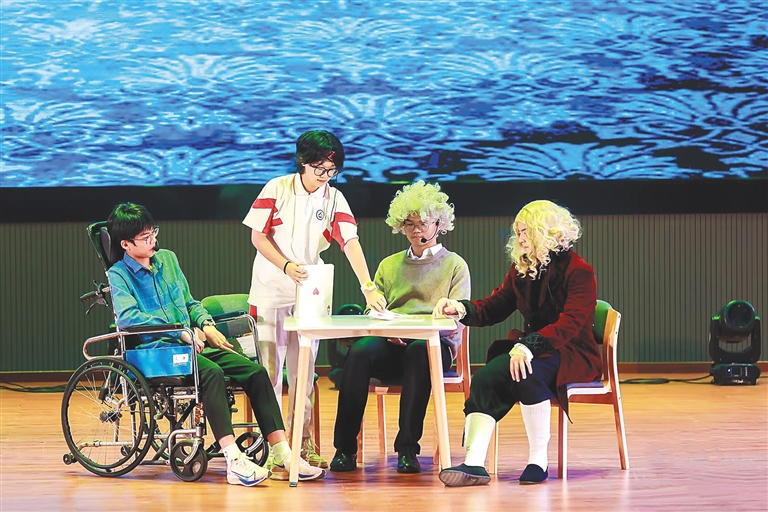 回忆起该校首部原创物理学史舞台剧《谭静塔的奇幻之旅》的创作过程,郑巍微说,整个过程十分不易,“此前,老师和学生都没有舞台剧表演的经历,大家都要在不断探索中前进。从剧本创作、团队组建到舞台走位、表情管理、服装道具设计等,我们克服了重重困难,学生的积极性和创造性也得到充分调动”。
