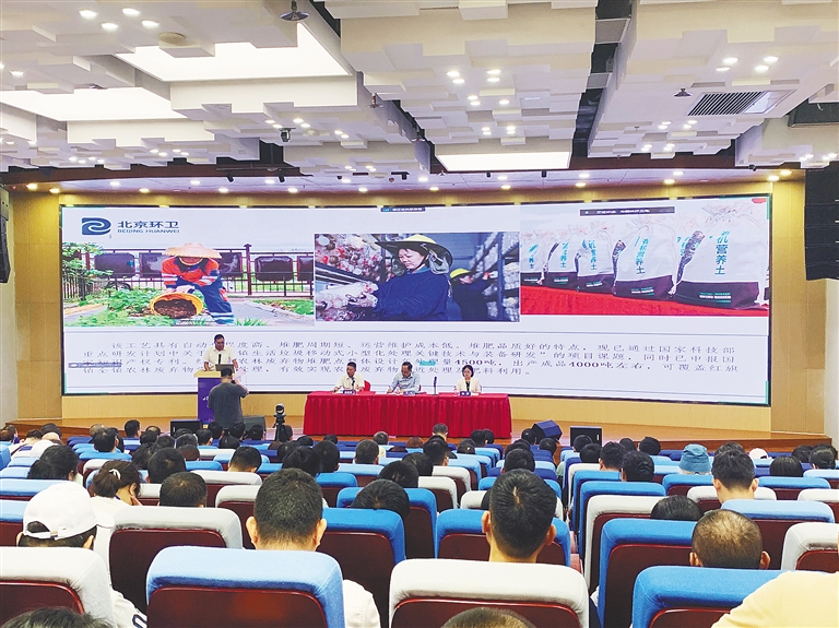 当天下午还举行了垃圾分类经验交流会。海口玉禾田环境服务有限公司、琼山区凤翔街道、海口京环城市环境服务有限公司、珠江格瑞物业管理有限公司相关负责人分别作了经验汇报,提高了大家对生活垃圾分类和智慧城市建设的认识和了解。