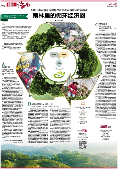 记者注意到,农家乐的门口挂了两块牌子,一块写着“五指山水满乡绿动有机农业专业合作社”,另一块则写着“五指山市晖正茶业有限公司”。“我们看好这里的茶叶品质和原材料价格优势,与合作社签订了协议。”五指山市晖正茶业有限公司负责人张超说,消费者对茶叶的品质非常看重,合作社用生态立体循环农业模式生产的大叶茶,得到了许多消费者的青睐,公司与合作社将共同打造高端茶叶品牌。