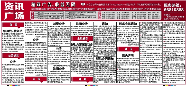79B)拟向海南省市场监督管理局申请注销,请相关债权债务人见报之日起15天内到本公司办理事宜。