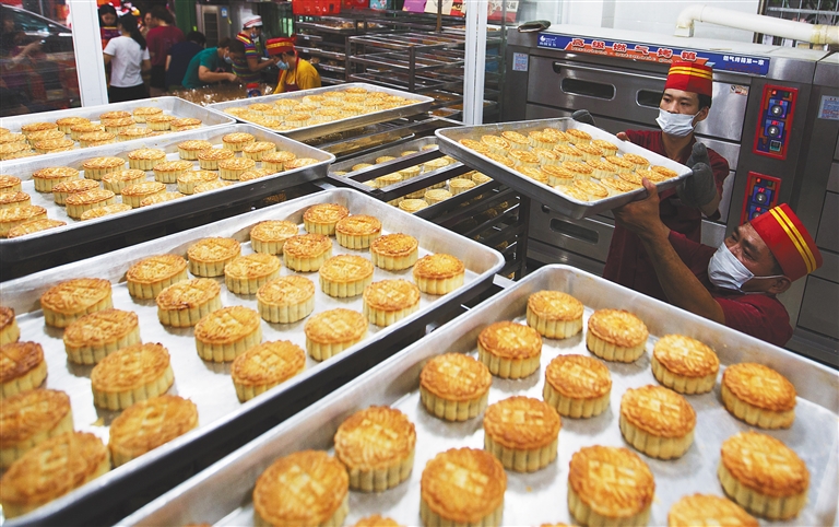 “我们这些月饼都是一个个手工模具制作出来的。”东风茶楼负责人何子藩说,现在很多月饼都已更新换代,但他们还在坚持传统配方,手工制作,讲究的就是用老味道留住老街坊的心。