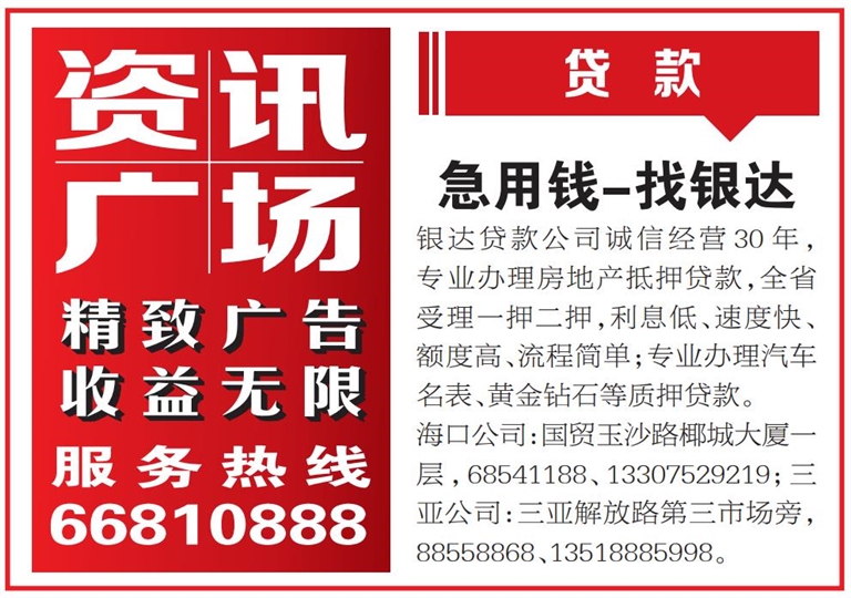 海口公司:国贸玉沙路椰城大厦一层,68541188、13307529219;三亚公司:三亚解放路第三市场旁,88558868、13518885998。
